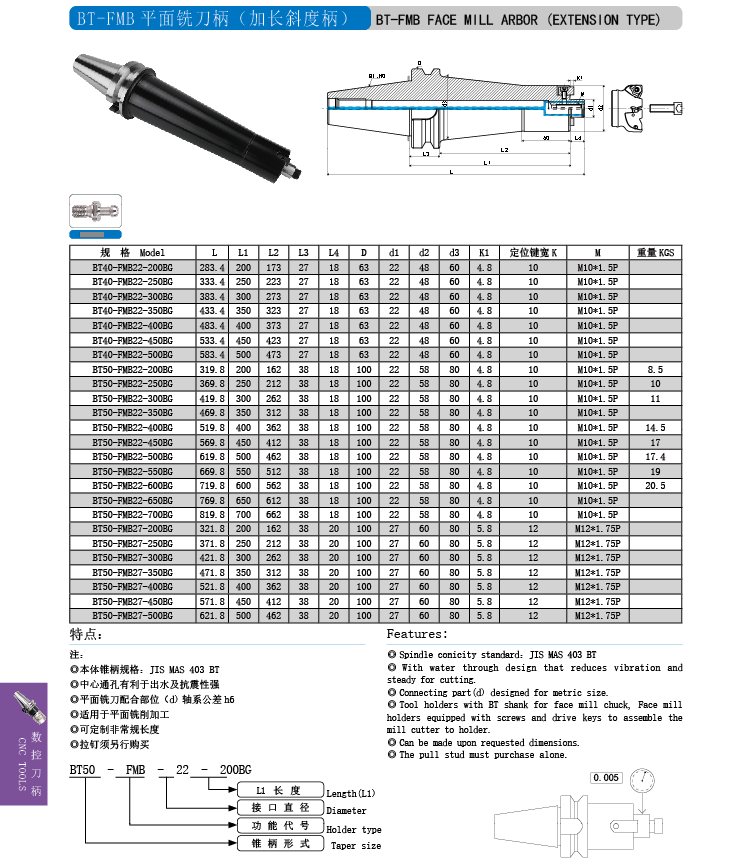 BT-FMB 平面铣刀柄(加长斜度柄)