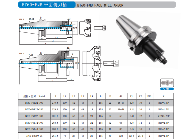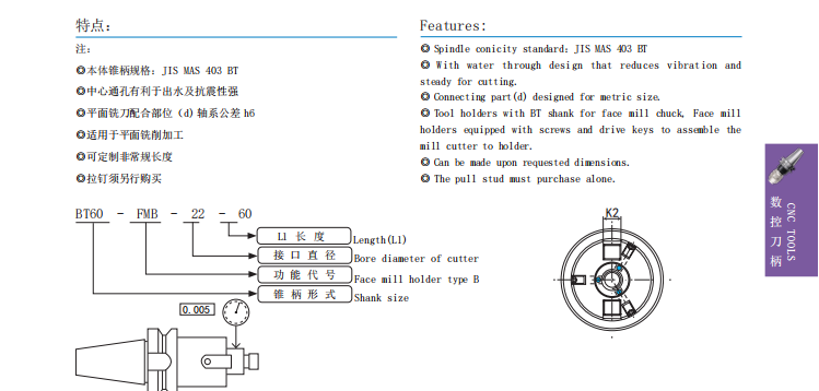 BT60-FMB 平面铣刀柄