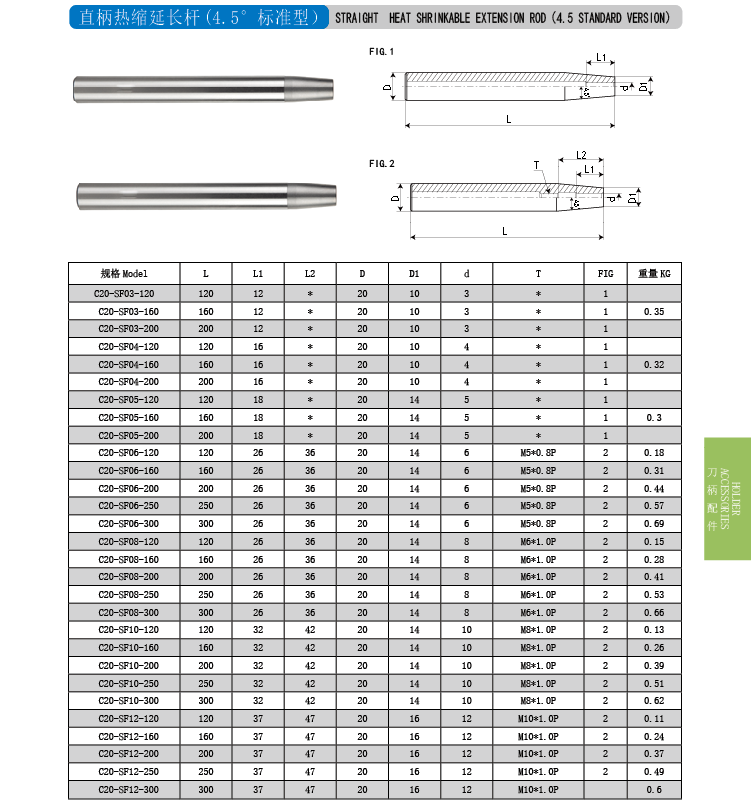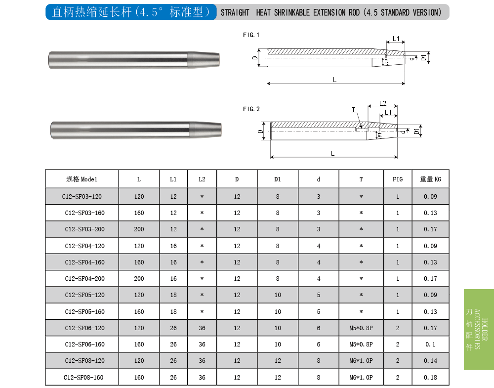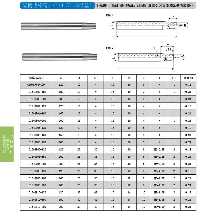 直柄热缩延长杆 (4.5°标准型)